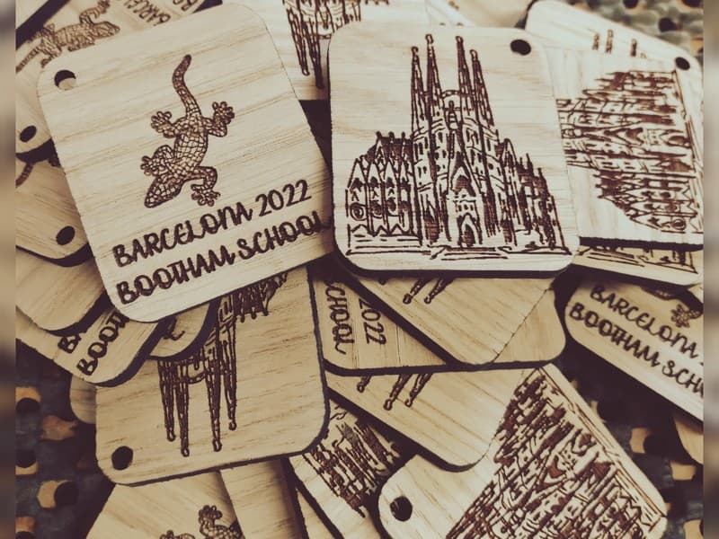 We’ve made 1000s of keyrings over the years; from large orders for businesses wanting their branding on them, wedding favours that double up as place setting to little one-off pieces for favourite teachers. All our Keyrings are made from sustainably sourced materials from FSC certified materials.